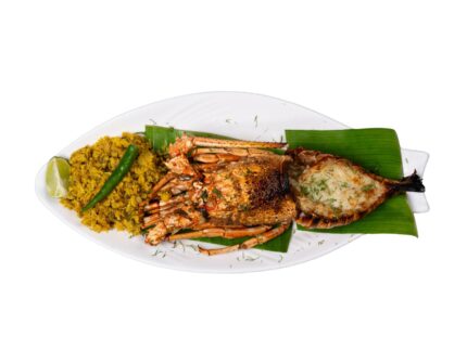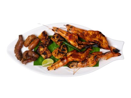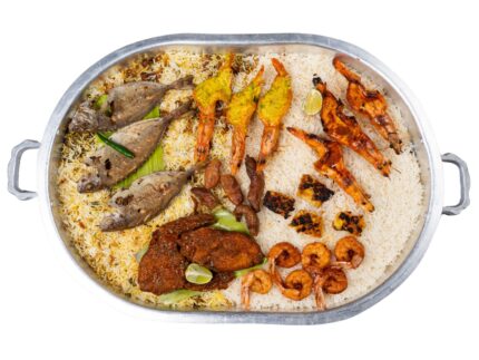 روبيان 6، جشيد 1، محار 2، يقدم مع رز أبيض، دقوس وصوص